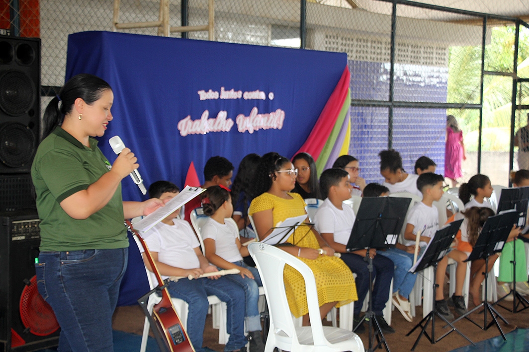 Durante o evento, os estudantes das escolas municipais também protagonizaram apresentações culturais que emocionaram o público. Por meio da música, da dança e de uma peça teatral, eles reforçaram mensagens sobre a importância da educação e do combate ao trabalho infantil, mostrando que o lugar de criança é na escola, aprendendo e desenvolvendo seus talentos.
